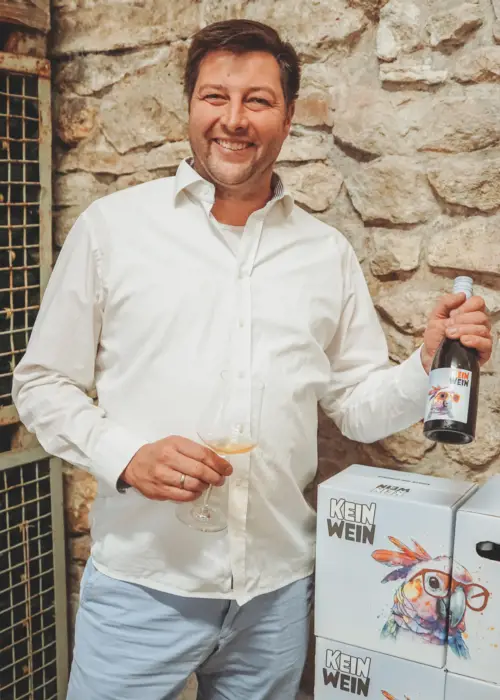 Michael Gutzler: Zur Erhaltung der natürlichen Inhaltsstoffe wird „KeinWein“ nicht filtriert. Es kann sich also ein leichtes Depot bilden. Die Flasche vor dem Öffnen daher bitte zart schütteln!