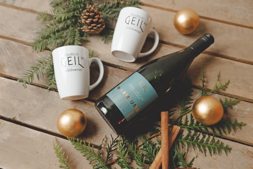 Passend zur Jahreszeit gibt es ein besonderes „Winterangebot“: Beim Kauf von sechs Flaschen Glühwein „Warm ums Herz“ gibt es eine „Geile“ Glühweintasse gratis dazu.